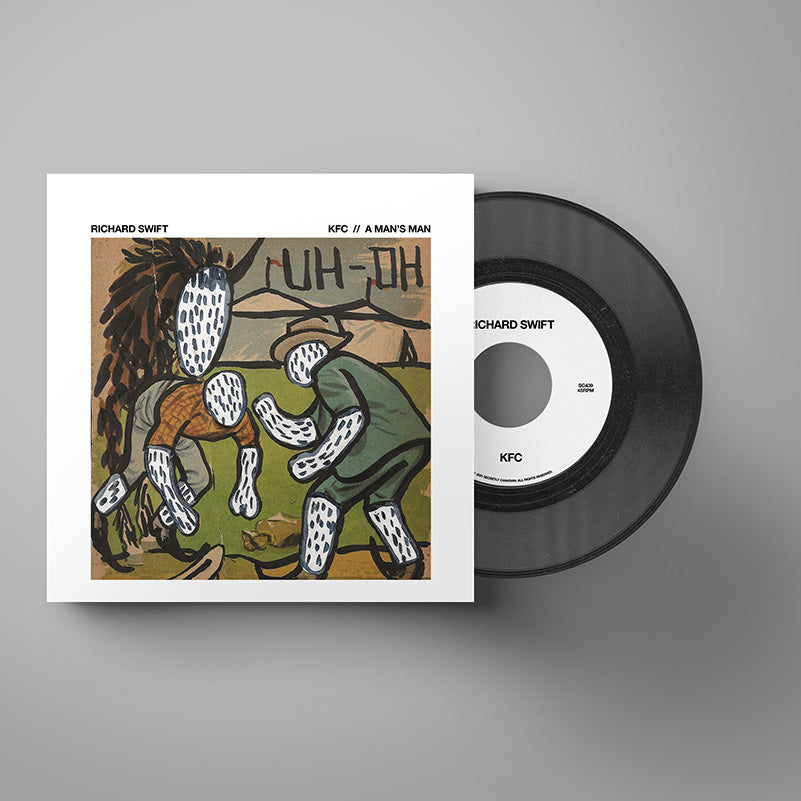 Former KFC manager and visionary producer Richard Swift took his humor very seriously. His novelty songs are as important to his oeuvre as The Big Hits. In the wee hours of the morning at his National Freedom studio in Cottage Grove, Oregon, he would crank out one of these joke songs, which were often sent out to friends and associates on the East Coast so that it would be sitting in their inboxes come that workplace whistle blow. One such work, “KFC,” recorded during the same sessions that brought us his famed ‘Walt Wolfman’ EP, is a scatological spoken word masterpiece. The track is paired with the unreleased “A Man’s Man,” recorded during Swift’s “Onasis” sessions.