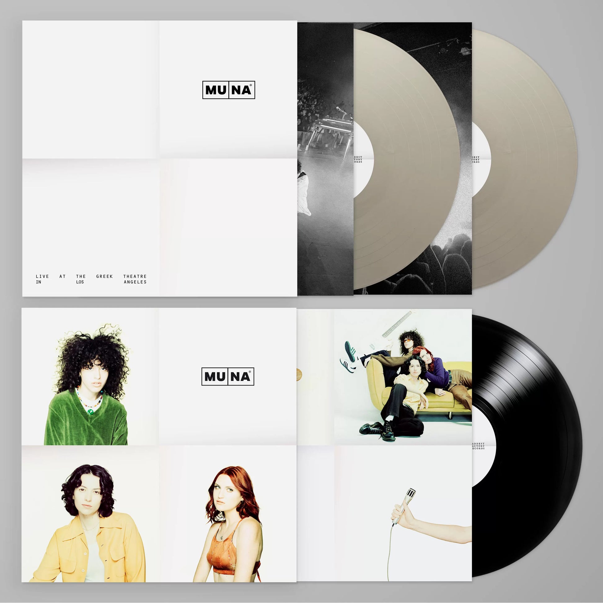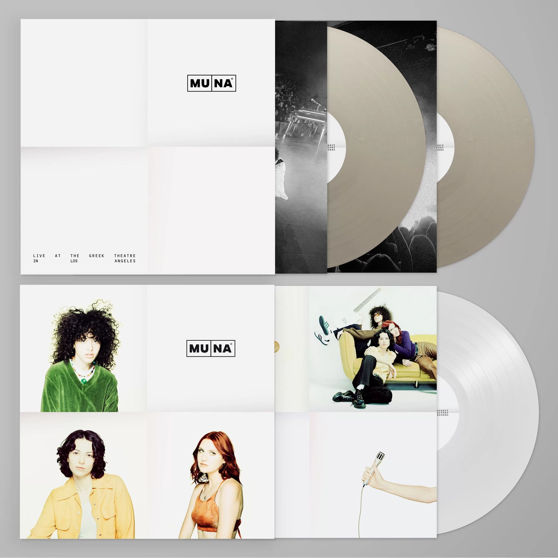 MUNA’s first-ever official live recording spanning the band’s full catalog on two, limited-edition opaque silver vinyl LPs. With over twenty tracks assembled, Live At The Greek Theatre in Los Angeles spans the band’s entire catalog, and features virtually all of MUNA’s most beloved songs, including Silk Chiffon (featuring Phoebe Bridgers on her verse as well as Julien Baker and Lucy Dacus on backup vocals), What I Want, Kind of Girl, One That Got Away, I Know a Place, Anything But Me, Number One Fan, Stayaway and many more.